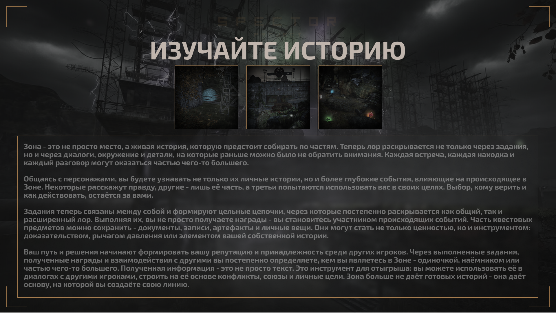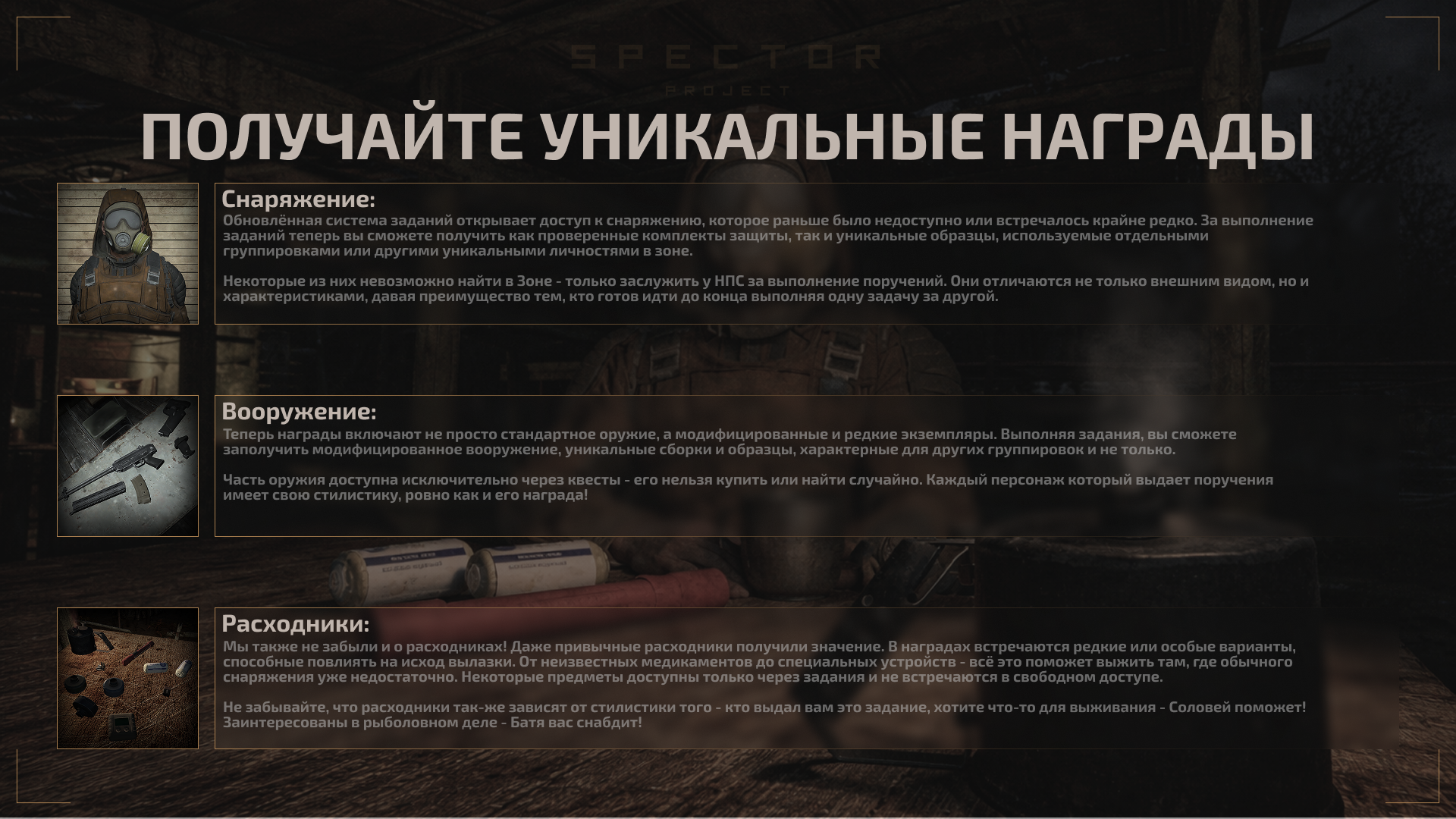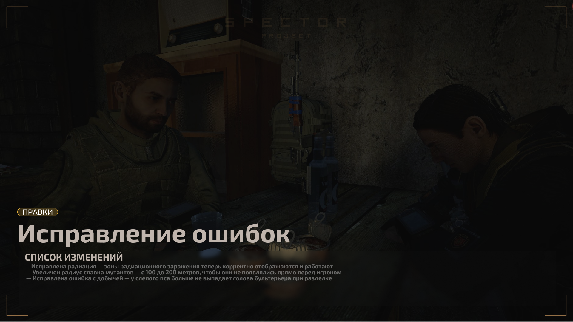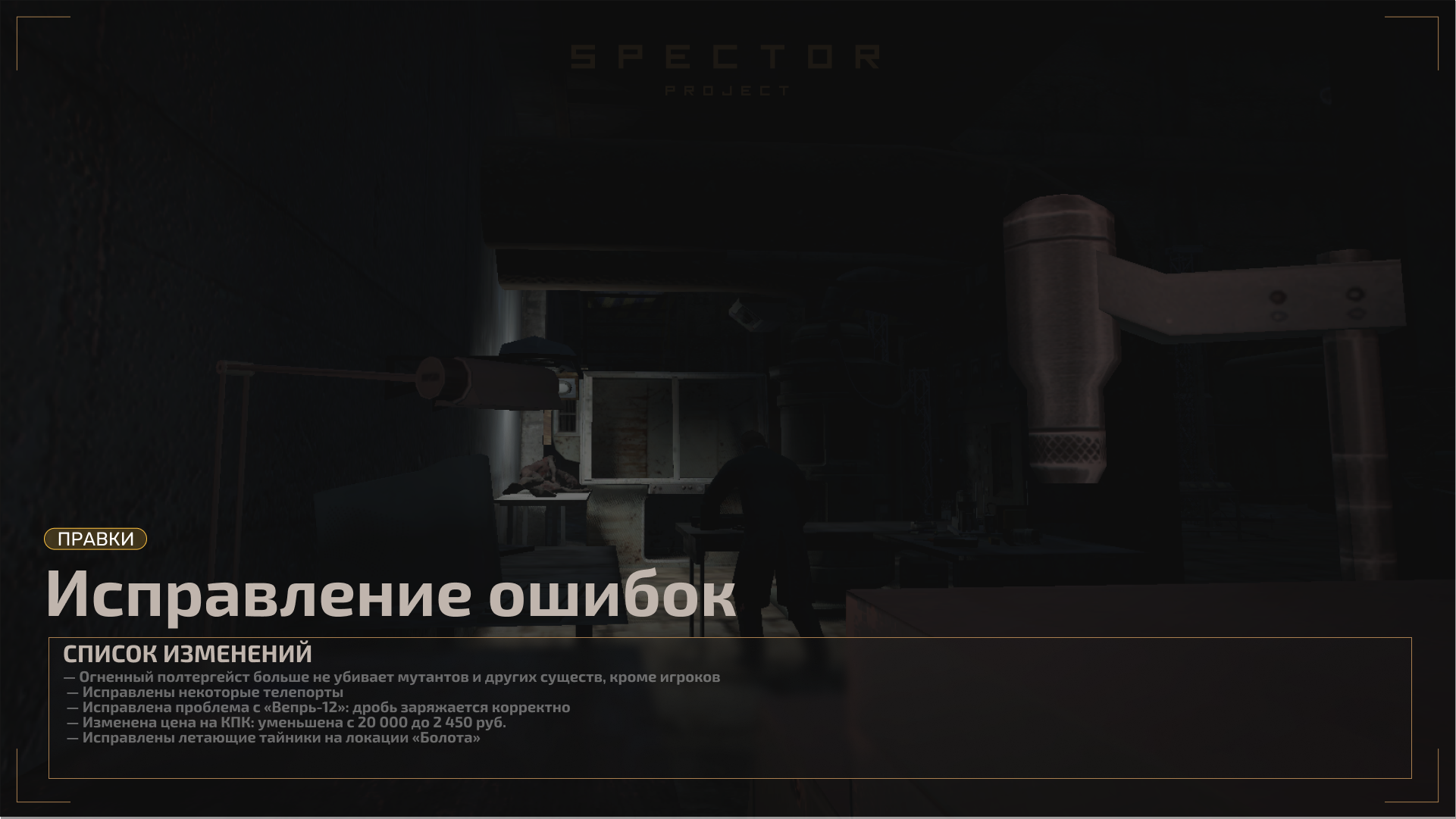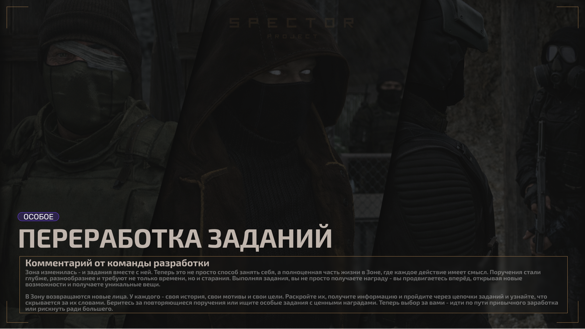 Команда разработчиков SPECTOR PROJECT на связи. Долгое ожидание и тяжёлая разработка наконец-то подходят к концу. Мы завершаем последние приготовления и совсем скоро Зона откроет свои объятия для всех желающих без паролей, без закрытых тестов и бесконечных технических работ, посему - спешим обьявить следующее: